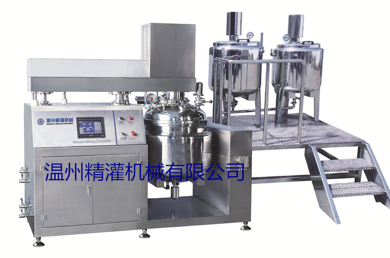 JGZRJ系列真空乳化攪拌機(jī)組在引進(jìn)德國(guó)技術(shù)的基礎(chǔ)上不斷改進(jìn),是專(zhuān)業(yè)針對(duì)化妝品、藥膏類(lèi)產(chǎn)品的制作工藝設(shè)計(jì)的。本機(jī)組主要由乳化罐、油罐、水罐、真空系統(tǒng)、液壓系統(tǒng)、電器控制等部分組成。本設(shè)備具有:以人為本的設(shè)計(jì)、簡(jiǎn)潔的操作、緊湊的結(jié)構(gòu)、穩(wěn)定的性能、均質(zhì)效果好、生產(chǎn)效益高、清潔維護(hù)方便、自動(dòng)控制程度高等特點(diǎn)。